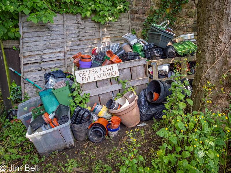- We set up the plant pot exchange at Belper Community Hall – take your surplus pots there and take away what you’d like. It’s well used but there’s more plant pots in the world than is necessary, Belper is no exception.