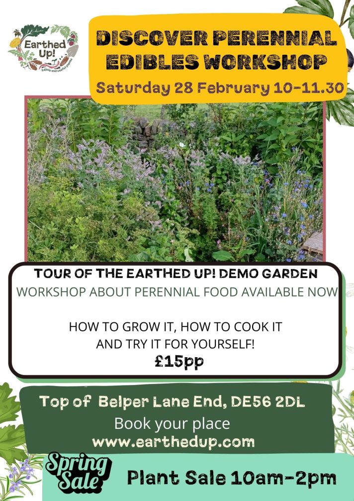 The discover perennial edibles workshop series helps you get to know what plants are abundant at different times of the year. We run them through the year, touring our diverse small garden, designed to inspire you and show the plants we grow in a natural form. The workshop leader is an experienced member of the Earthed Up! team.