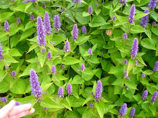 A lovely perennial herb for people and bees, spikes of purple flowers. Has a mild aniseed flavour great for tea, or leaves used in stir fries. Clumps up year on year.