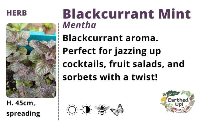 Moroccan (top photo), Chocolate mint (bottom photo), Black peppermint, Bowles mint, Apple mint, Ginger mint, Blackcurrant mint, Pineapple mint, Strawberry mint. A delectable selection for different uses.