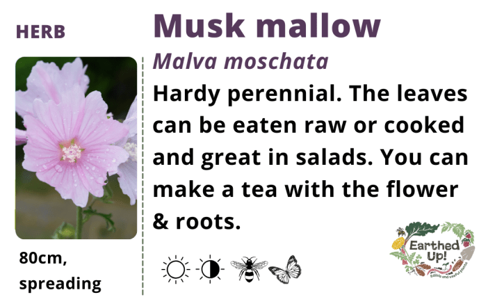 Attractive perennial growing to 1.2 m. Small purple-centred flowers later summer. Leaves eaten raw or cooked, also flowers raw. Roots are used medicinally.